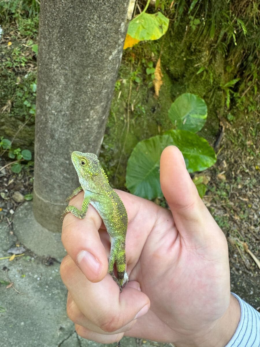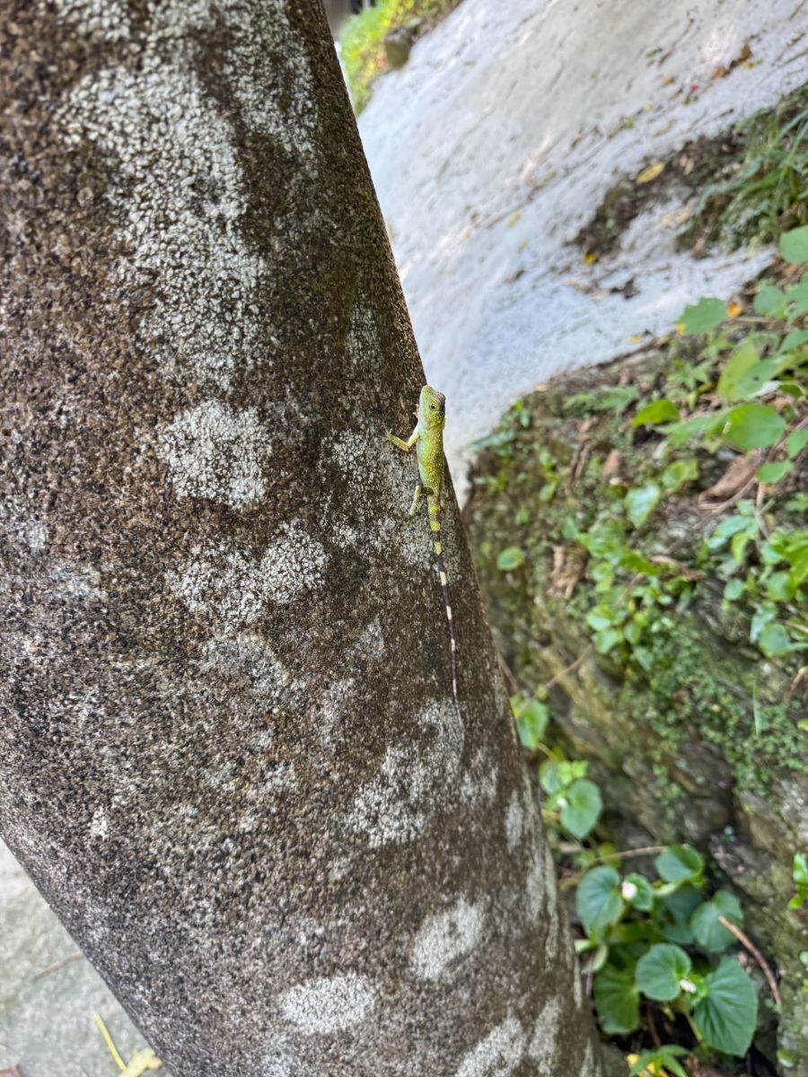 Categories ブログ オキナワキノボリトカゲ こんにちは。フジンヤブログ担当のキノコです。 今回ご紹介するのは「オキナワキノボリトカゲ」。 オキナワキノボリトカゲは、沖縄諸島や奄美諸島に生息する日本固有の樹上性トカゲ(アガマ科)です。緑〜褐色の体色で全長20〜30cmになり、木の幹にいる姿がよく見られます。環境省レッドリストで絶滅危惧II類に指定されており、近年個体数が減少しています。 最近はやんばるでも見ることが減りましたが、ちゃんと生息していて安心です。 撮影場所:名護市喜如嘉七滝 2025年10月25日/先勝
